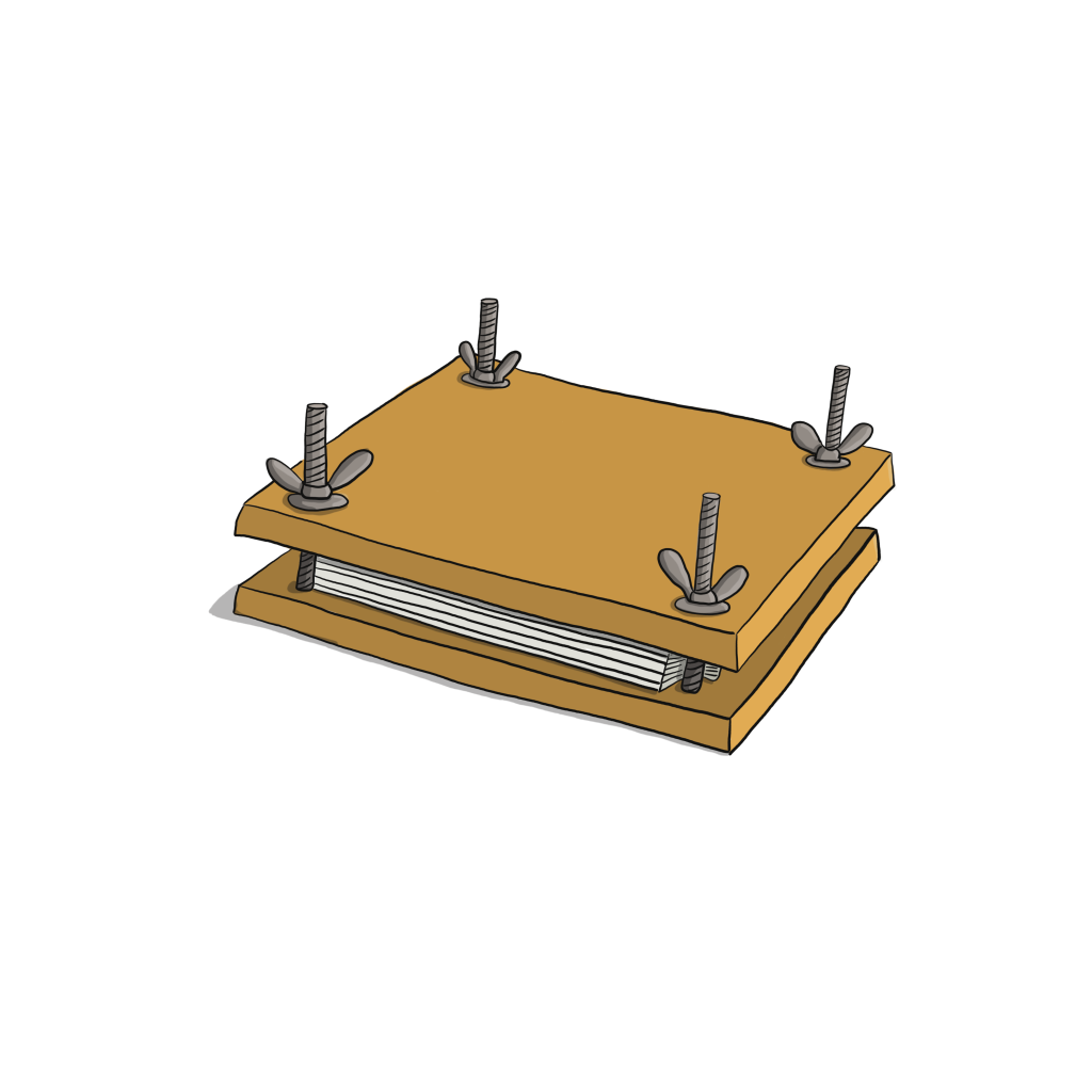 Auch jetzt brauchst du ein bisschen Geduld, denn du solltest, je nach Dicke der Pflanze, mindestens eine Wochen pressen. Lege am besten noch zwei drei Bücher oben auf, damit ein bisschen Gewicht die Pflanze drückt.