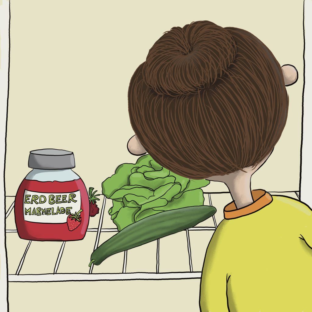 In meinem Kühlschrank habe ich eine Tomate gefunden. Sie war ganz nach hinten, hinter die Erdbeermarmelade gerutscht und war inzwischen nicht mehr so schön.